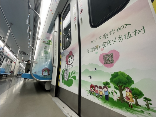 据悉,接下来的一个月里,“互联网+全民义务植树”地铁主题列车每天都会在青岛地铁3号线出现,有幸遇到的市民不要错过这份惊喜。而列车上线的第一个周还将推出有趣的互动抽奖活动。