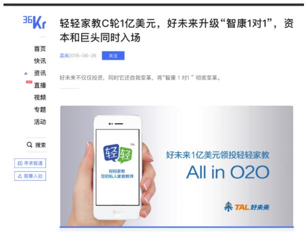 2015年5月,国内最大的教育集团好未来将轻轻纳入其“购物车”,投资了轻轻B+融资。