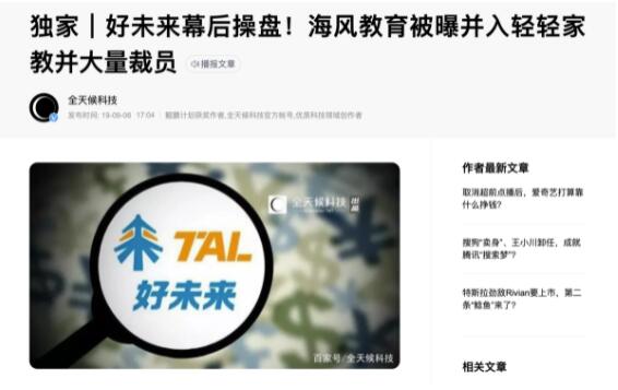 2019年年中,好未来投资的另一家明星企业“海风教育”传出濒临崩盘的消息,当时曾有媒体从二级市场拿到一份融资报告显示,轻轻和海风在好未来的撮合下即将合并。