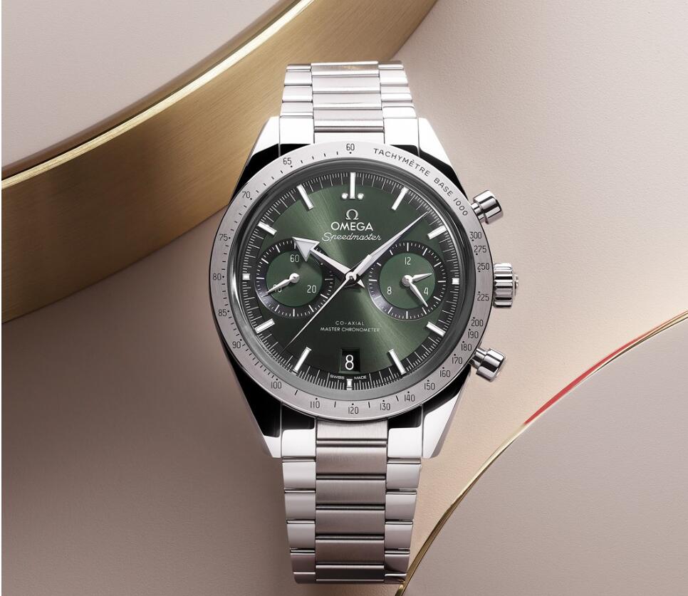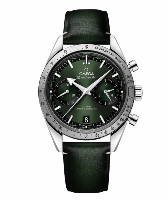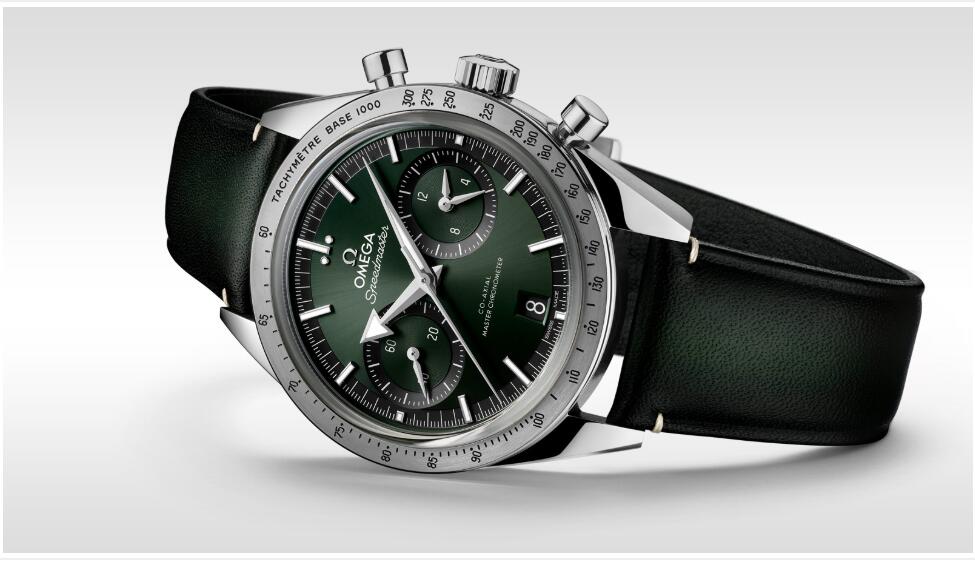超霸系列腕表是欧米茄的标志性表款,超霸腕表参与了人类截止目前的六次登月任务,充分彰显品牌的先锋精神。这款表的设计灵感源自欧米茄于1957年推出的超霸原型表款,表壳直径为40.50毫米,绿色表盘搭配镀铑小时刻度和「阔箭」指针,均覆有白色Super-LumiNova夜光涂层。6点位设有日历窗,9点位设有小秒盘,3点位则设有12小时和60分钟计时小表盘。表圈经过拉丝处理,饰有经过黑化处理的测速刻度,表背上镌刻「Speedmaster’57」字样,历史感十足。搭配绿色皮表带,表扣浮雕欧米茄品牌标识。特别值得一提的是,该表内部搭载欧米茄9906手动上链至臻天文台机芯,让行家们推崇异常。