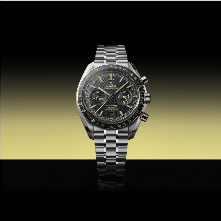 关于这款新表的外观与功能:典型的第四代超霸风格,属于表迷们熟悉而青睐的「月亮表」。值得注意的是其黄色测速计标尺,以及9点位黄黑相间的小秒针配色,这是为了呼应2013年推出的欧米茄第一款15000高斯防磁腕表海马Aqua Terra「大黄蜂」。另一个相应的小细节,6点位的日历窗里显示的特殊字体「10」,代表着2013到2023的10年,以提醒人们欧米茄在防磁技术上的再一次重大突破。机械计时机芯的爱好者还会注意到它采用的导柱轮的结构,手感更加清晰。