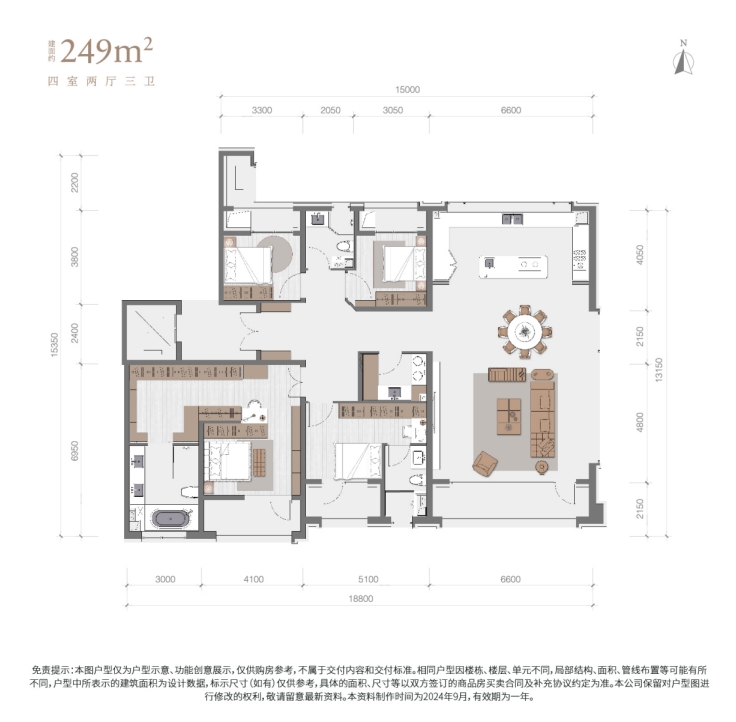 户型设计上,打造建面约143-249㎡精妆大平层,创新户型的格局,最大约7米通高整板玻璃水晶大堂,凸显归家的礼序;无界社交厅,俯瞰东四环的繁华,感受山水园林的自然诗意;全面屏落地窗,拓展观景视野,窗外的风景尽收眼底。整体使用率比市场平均水平提升了5%至10%。以249㎡的大户型为例,配置独立的电梯厅与仪式感十足的十字圆厅玄关,设计约3.6米层高及约6.6米的奢阔客厅,实现空间体系的升级。