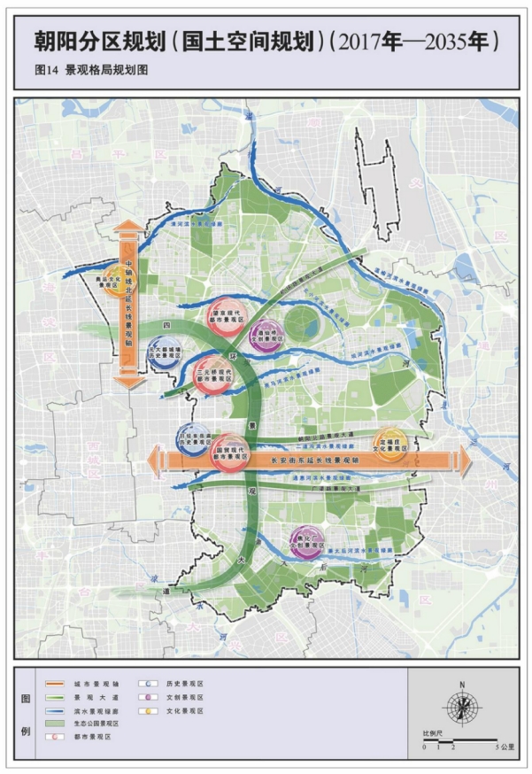 以朝阳公园为引领,周边丰盈绿地资源和项目北侧规划绿地建设为辅助,塑造生态空间格局,形成生态与城市共生发展。